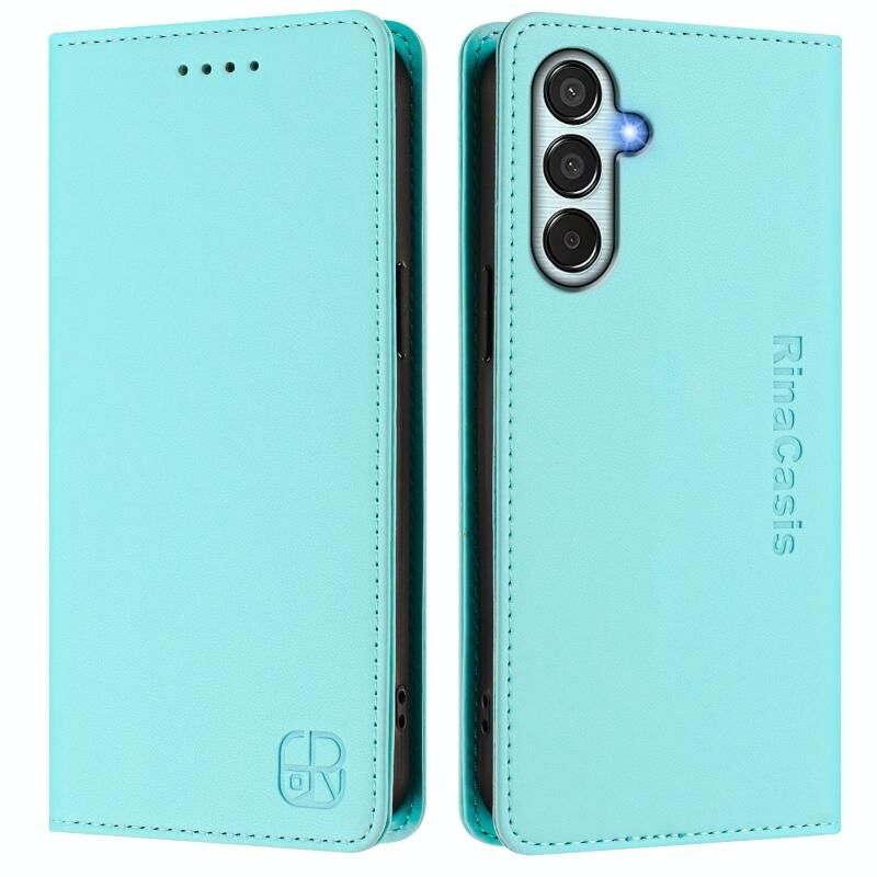For Samsung Galaxy M35 5G RC01 Dual-Folded Magnetic Suction RFID Leather Phone Case(Mint Green)