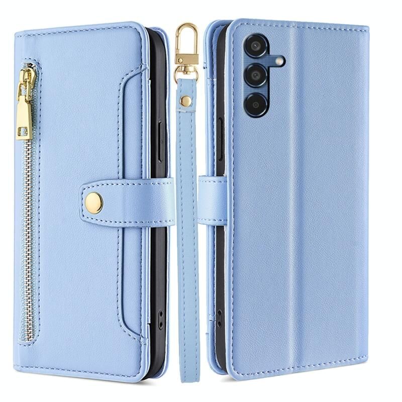 Για Samsung Galaxy M35 5G Πρόβατα Υφή Cross-body φερμουάρ πορτοφόλι δερμάτινη θήκη τηλεφώνου (Μπλε)