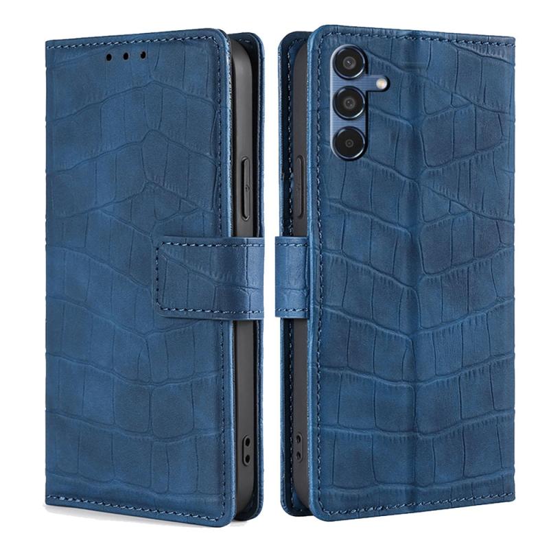 For Samsung Galaxy M35 5G Skin Feel Crocodile Magnetic Clasp Leather Phone Case(Blue)