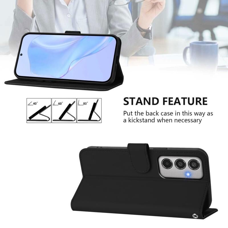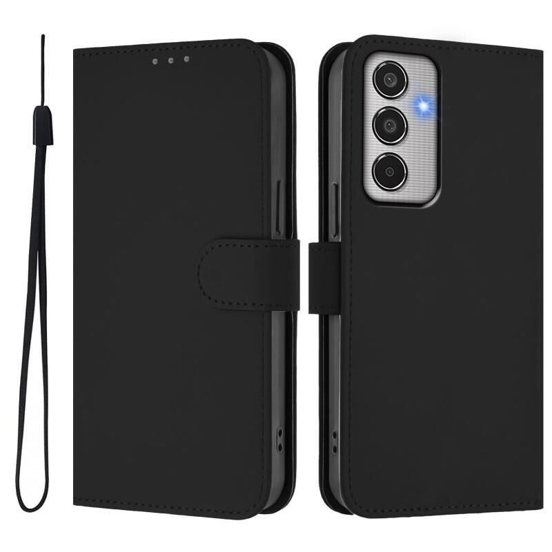 Για το Samsung Galaxy M35 5G δέρμα αίσθηση στερεό χρώμα δερμάτινη θήκη τηλεφώνου με κορδόνι (μαύρο)
