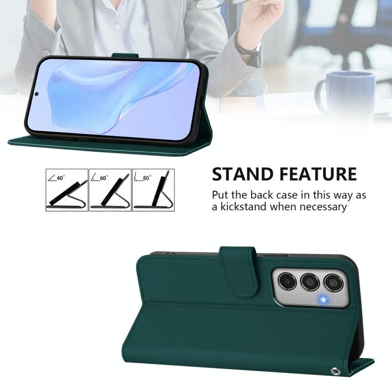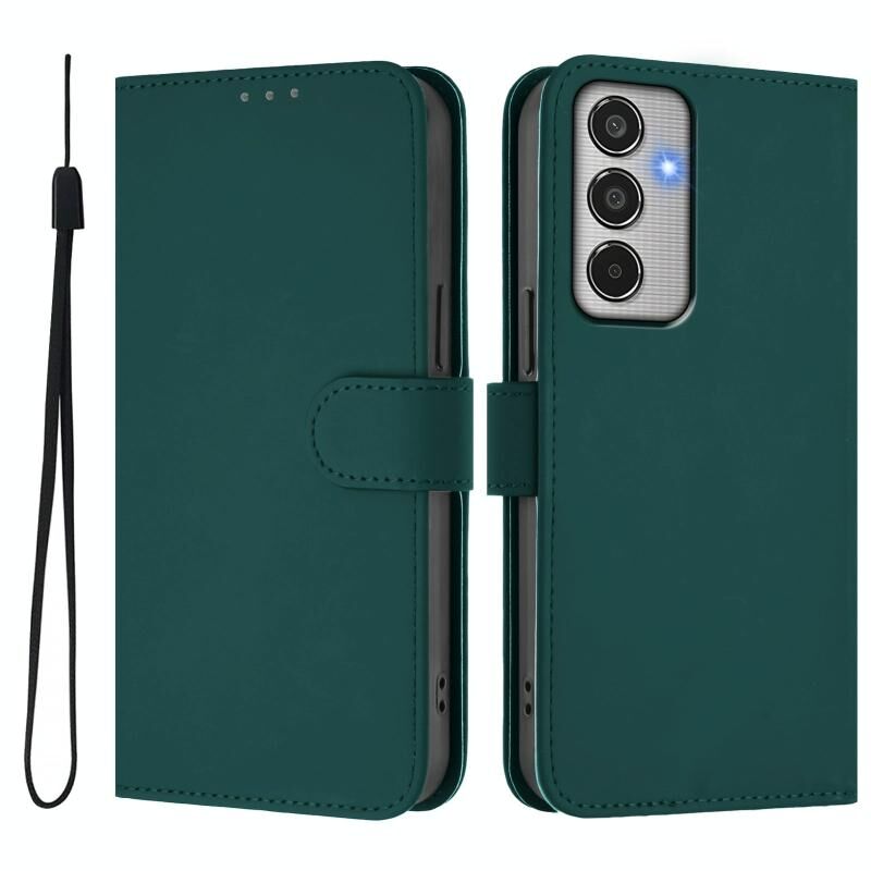 Για το Samsung Galaxy M35 5G δέρμα αίσθηση στερεό χρώμα δερμάτινη θήκη τηλεφώνου με κορδόνι (σκούρο πράσινο)