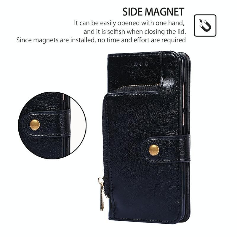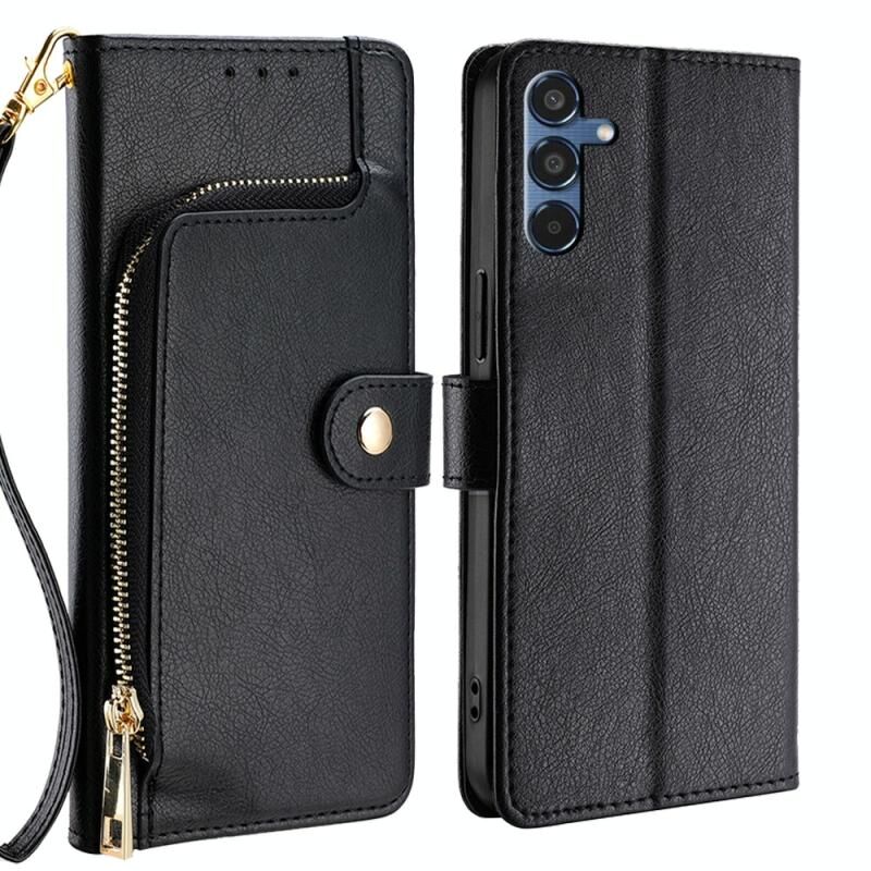 Για Samsung Galaxy M35 5G φερμουάρ τσάντα δερμάτινη θήκη τηλεφώνου (μαύρο)