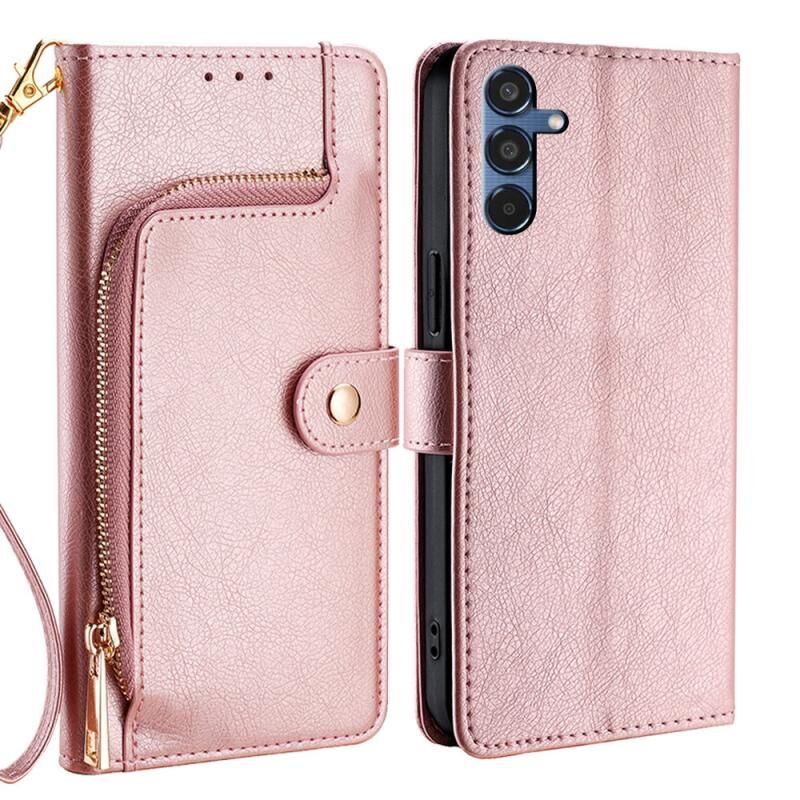 Για Samsung Galaxy M35 5G φερμουάρ τσάντα δερμάτινη θήκη τηλεφώνου (ροζ χρυσό)