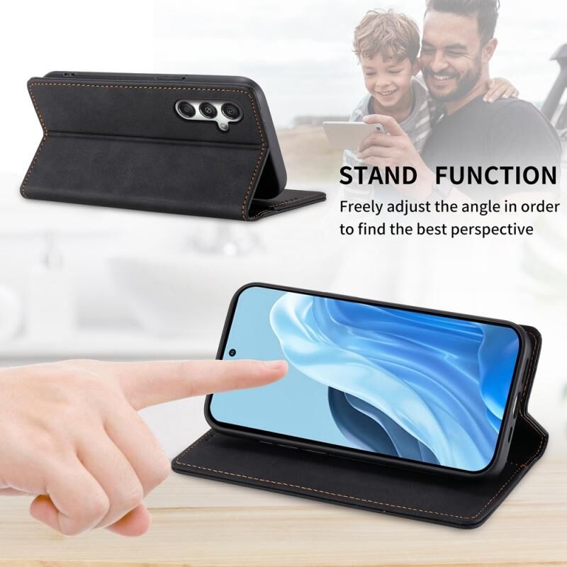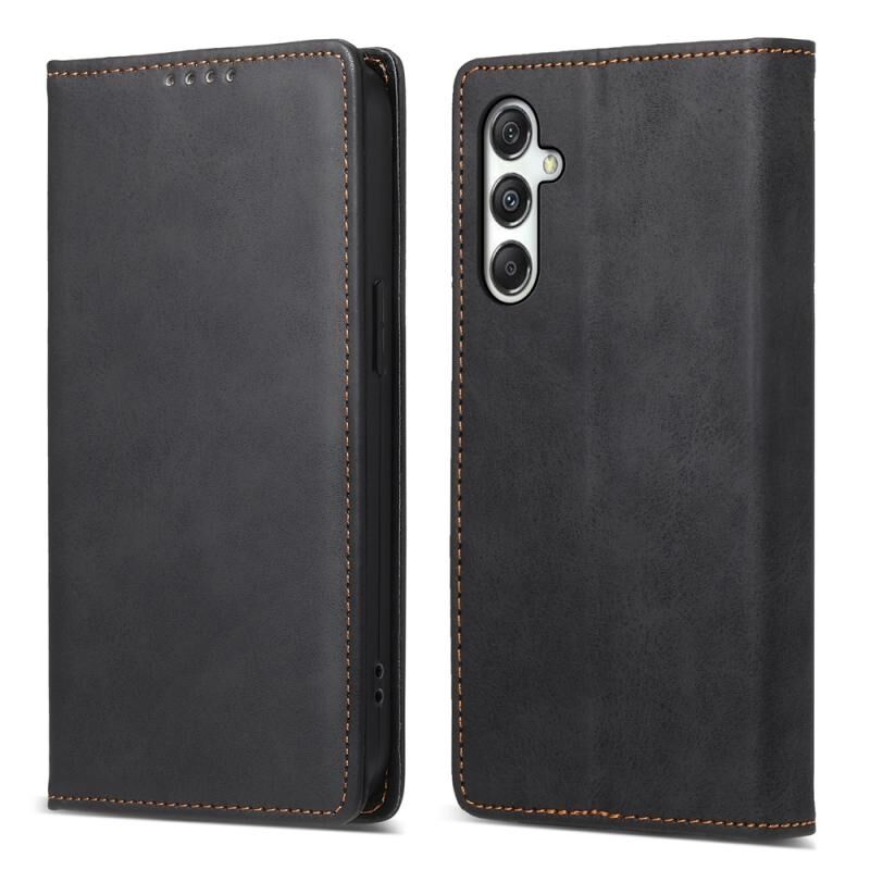 Για Samsung Galaxy M35 Business Solid Color μαγνητική RFID δερμάτινη θήκη τηλεφώνου (Μαύρο)