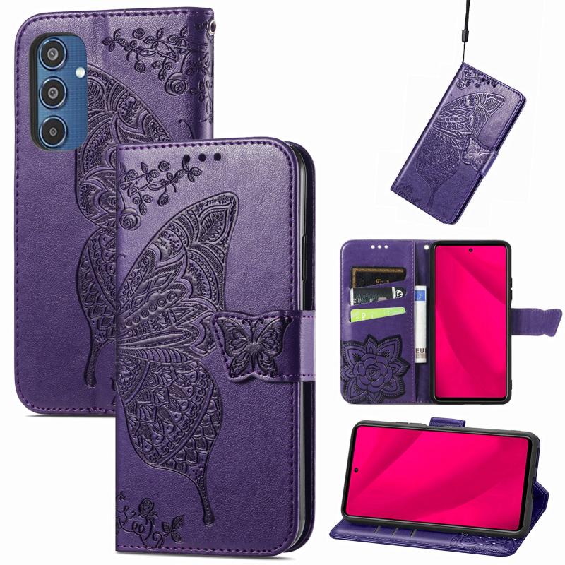 For Samsung Galaxy M35 Butterfly Love Flower Embossed Leather Phone Case(Dark Purple)