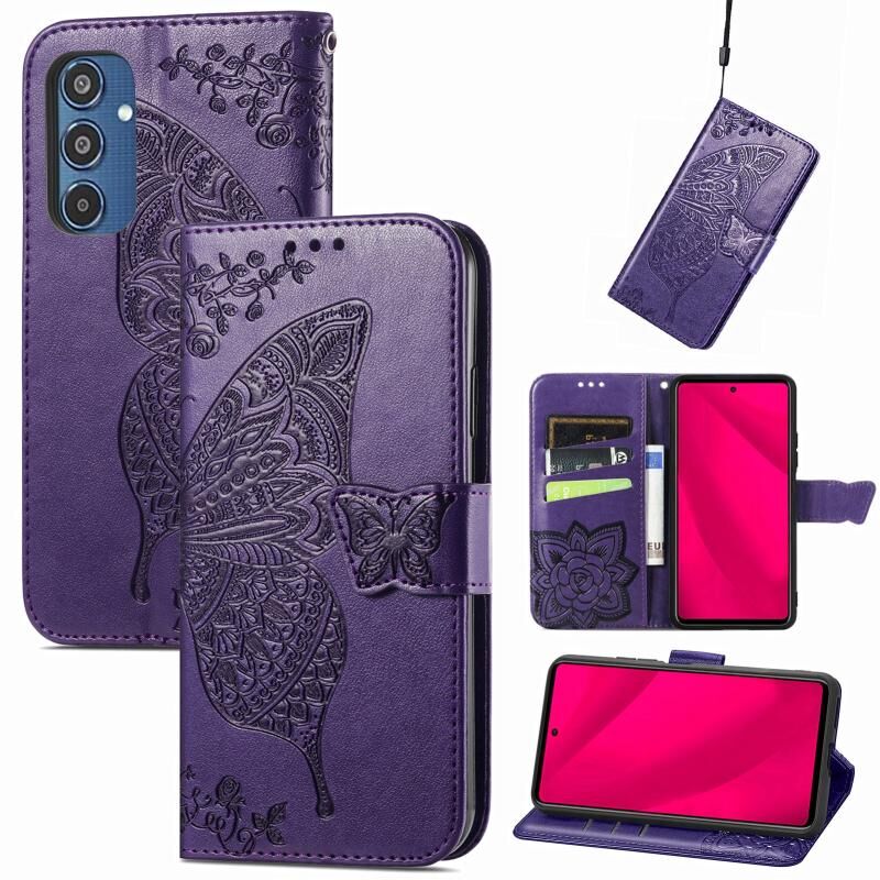 Θήκη τηλεφώνου Samsung Galaxy M35 με ανάγλυφο σχέδιο πεταλούδας και λουλουδιών από δέρμα (Μαύρο)