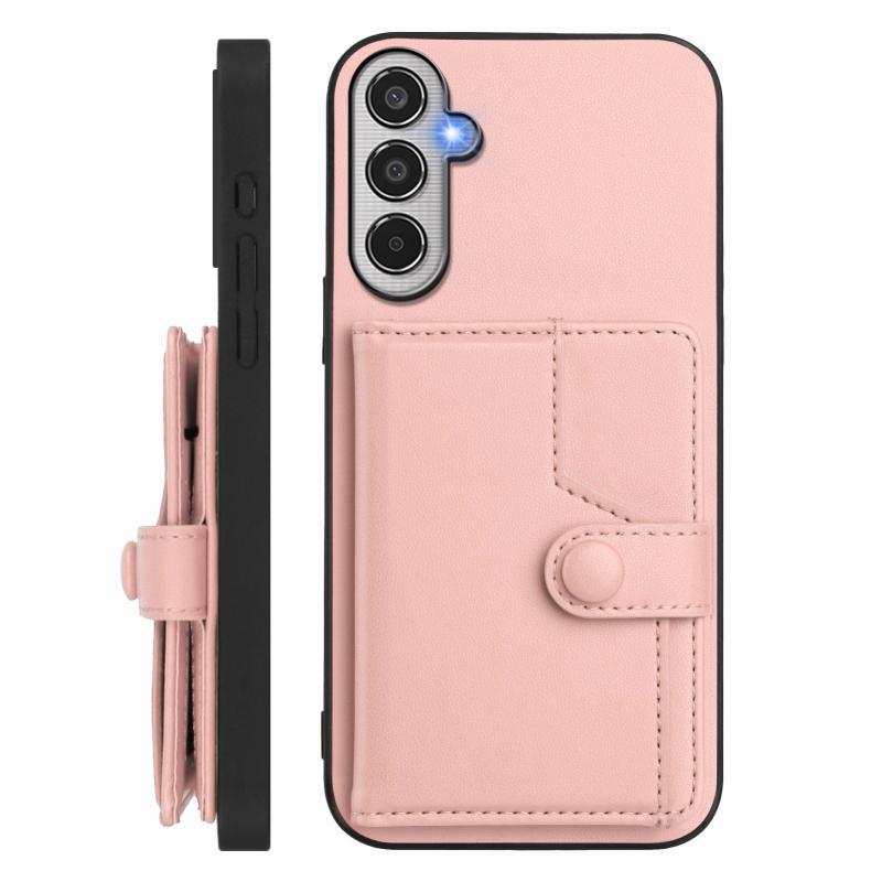 For Samsung Galaxy M35 Button Card Bag RFID Anti-theft Phone Case(Pink)