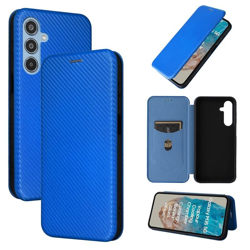 Για Samsung Galaxy M35 Carbon Fiber Texture Flip δέρμα τηλέφωνο υπόθεση (μπλε)