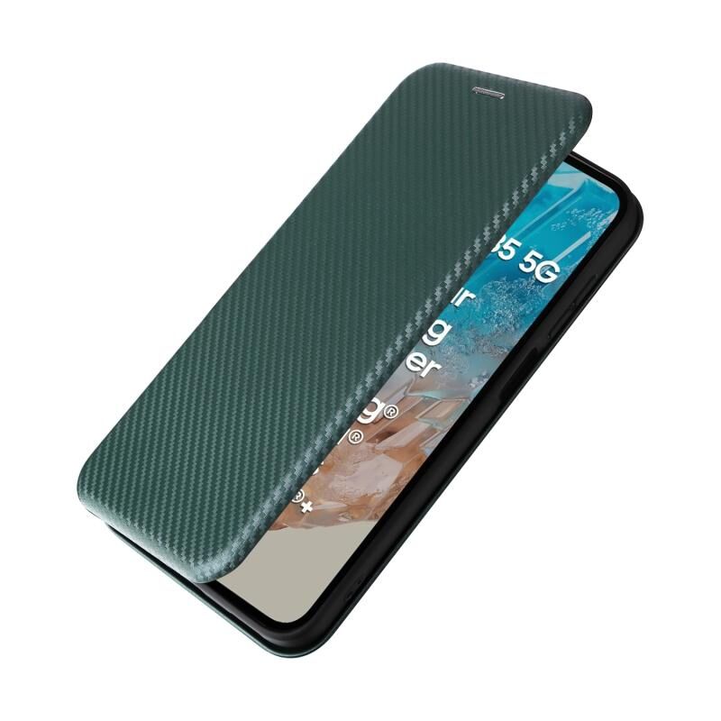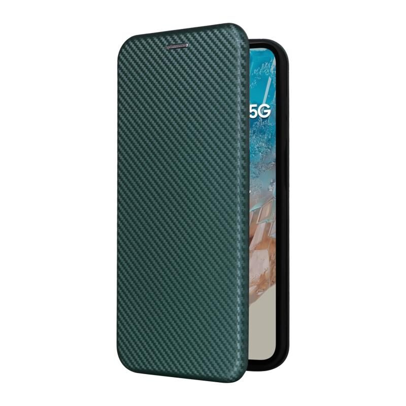 Για Samsung Galaxy M35 Carbon Fiber Texture Flip δέρμα τηλέφωνο υπόθεση (πράσινο)