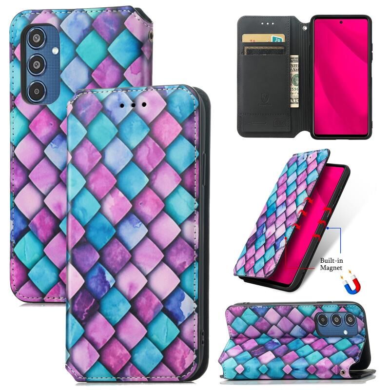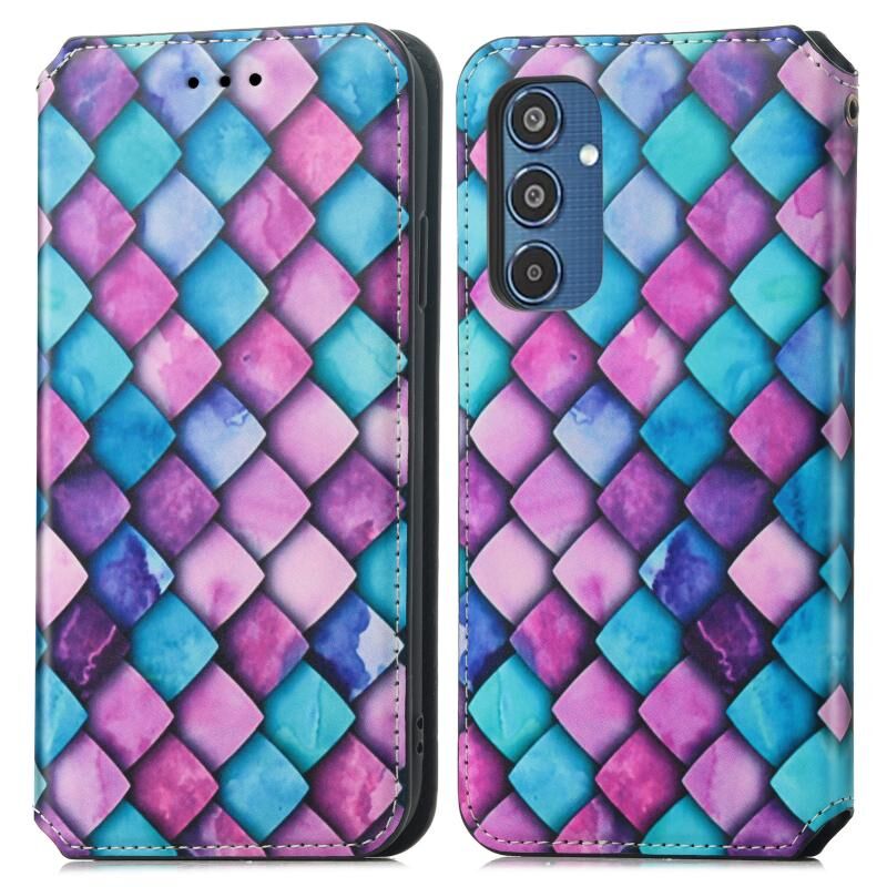 Θήκη για Samsung Galaxy M35 CaseNeo Πολύχρωμη Μαγνητική Δερμάτινη Θήκη Τηλεφώνου (Μωβ Λέπια)