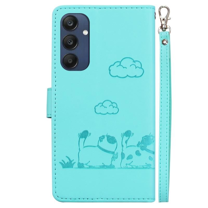 Θήκη τηλεφώνου Samsung Galaxy M35 με χαριτωμένες γάτες, από δέρμα με προστασία RFID (Πράσινο)