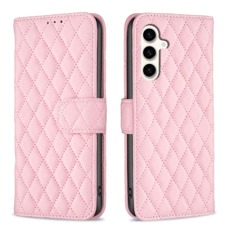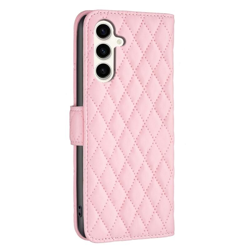 Για το Samsung Galaxy M35 Diamond Lattice πορτοφόλι Flip δέρμα τηλέφωνο υπόθεση (ροζ)