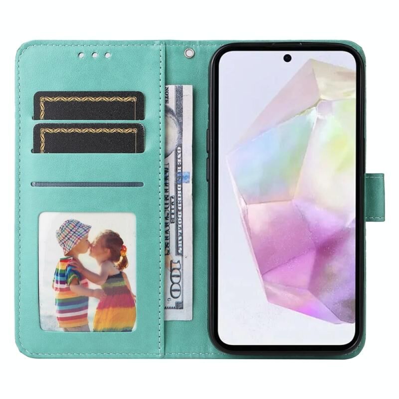 Για Samsung Galaxy M35 ανάγλυφο ηλιοτρόπιο δερμάτινη θήκη τηλεφώνου (πράσινο)