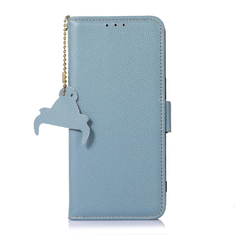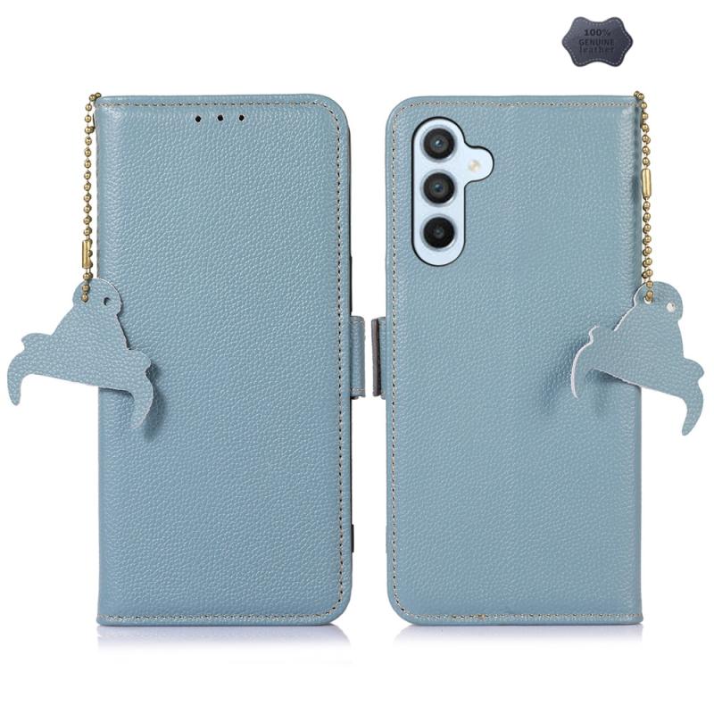 For Samsung Galaxy M35 Genuine Leather Mino Magnetic RFID Leather Phone Case(Ice Blue)