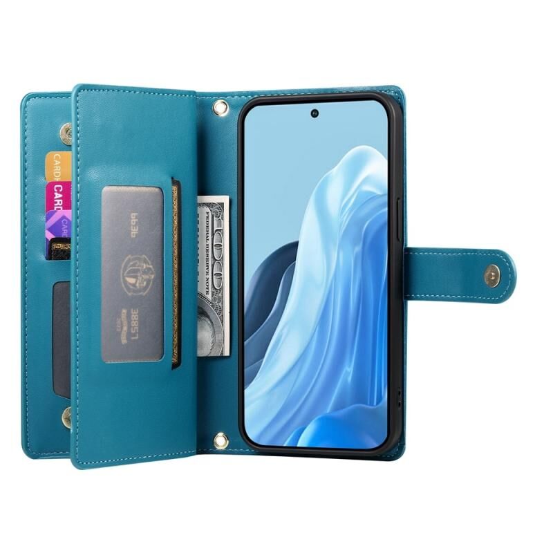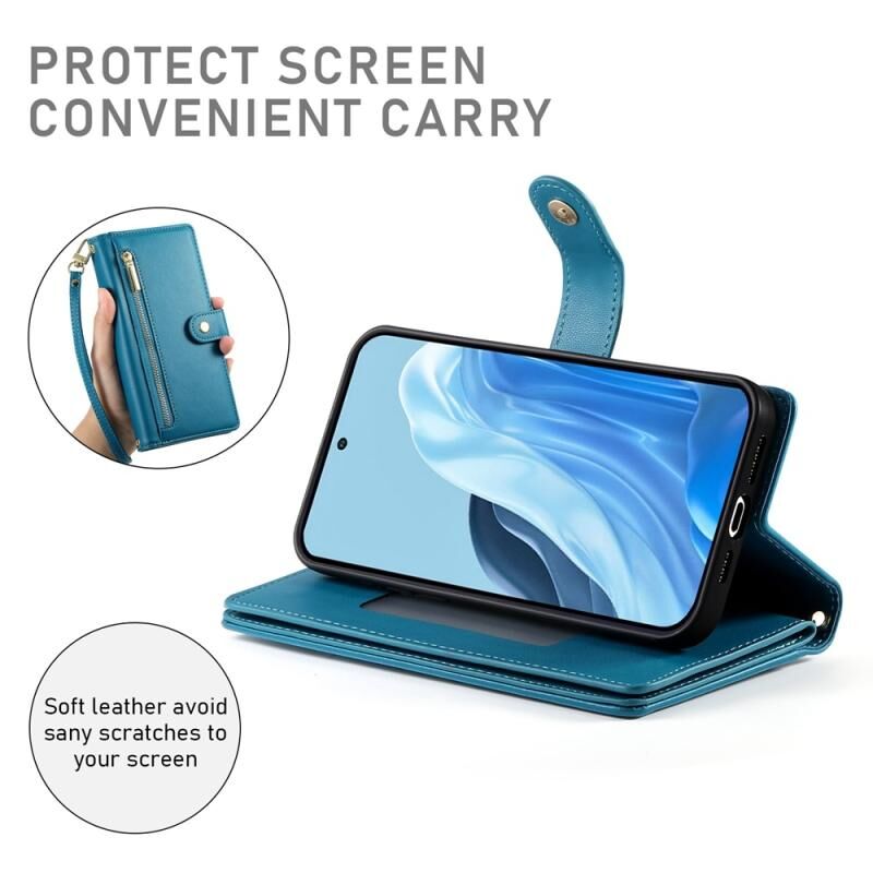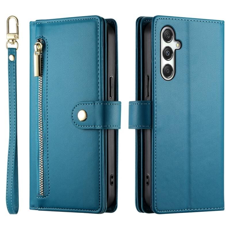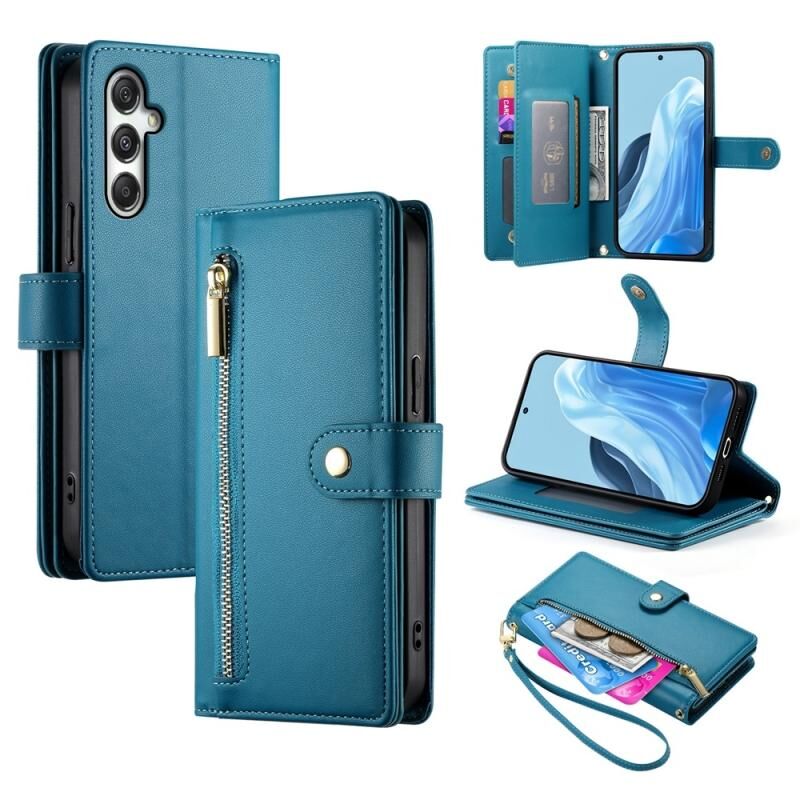 Για Samsung Galaxy M35 Nine Card-slot φερμουάρ πορτοφόλι τσάντα δερμάτινη θήκη τηλεφώνου (μπλε)