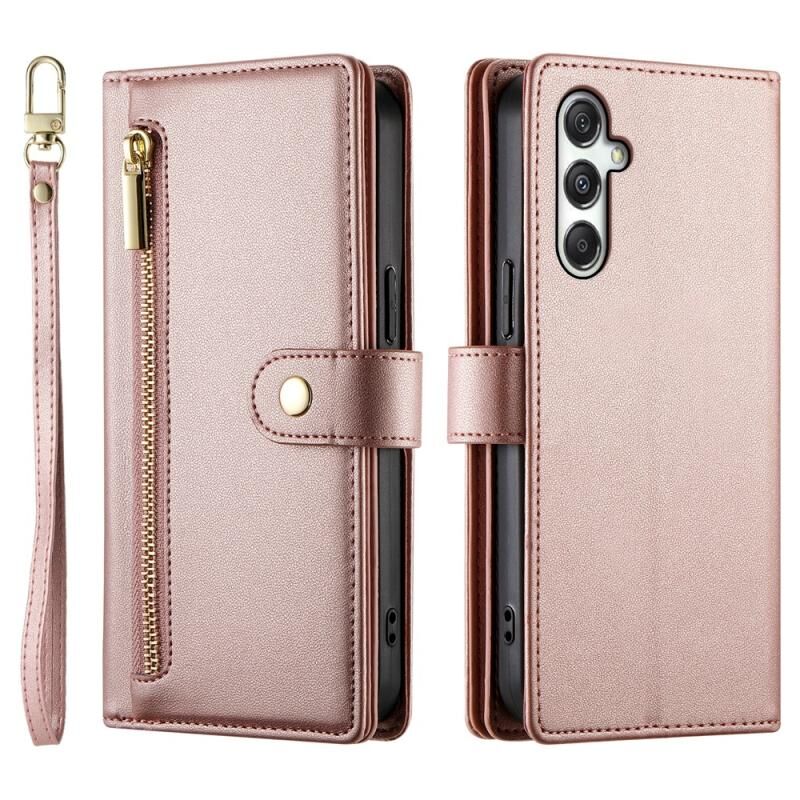 Για Samsung Galaxy M35 Nine Card-slot φερμουάρ πορτοφόλι τσάντα δερμάτινη θήκη τηλεφώνου (ροζ)