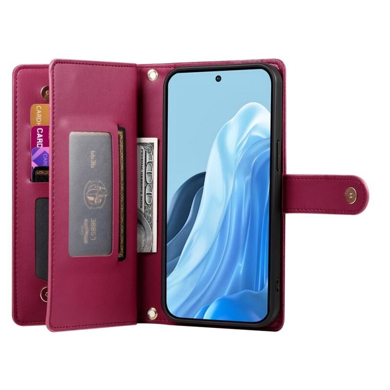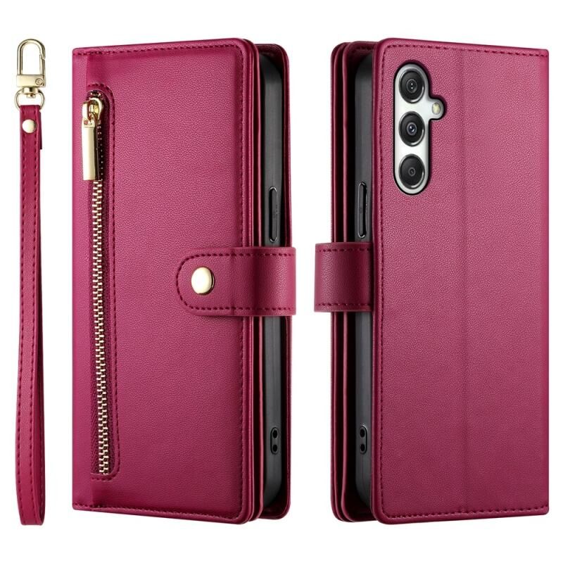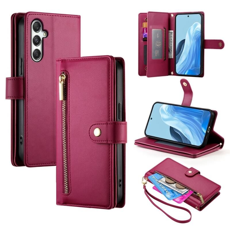 Για Samsung Galaxy M35 Nine Card-slot φερμουάρ πορτοφόλι τσάντα δερμάτινη θήκη τηλεφώνου (κόκκινο)