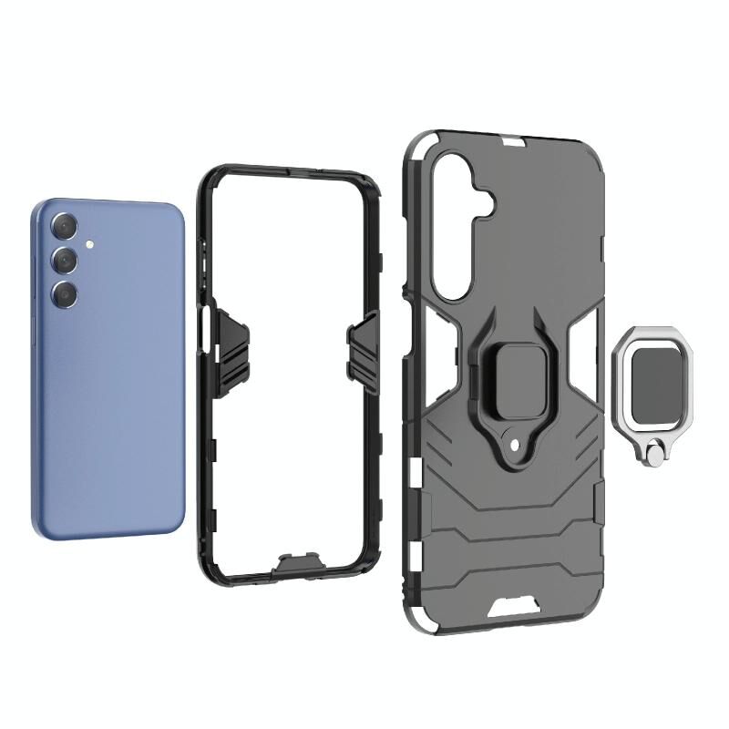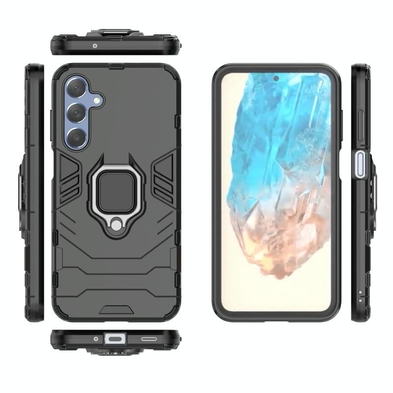 Για Samsung Galaxy M35 PC + TPU Shockproof Προστατευτική θήκη τηλεφώνου με μαγνητική θήκη δακτυλίου (Μαύρο)