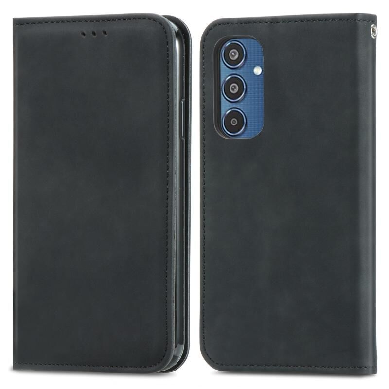 Για Samsung Galaxy M35 Retro δέρμα αίσθηση μαγνητική δερμάτινη θήκη τηλεφώνου (μαύρο)