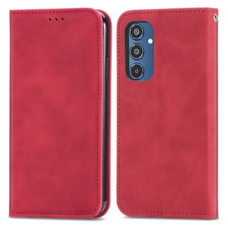 Για το Samsung Galaxy M35 Retro δέρμα αίσθηση μαγνητική δερμάτινη θήκη τηλεφώνου (Κόκκινο)