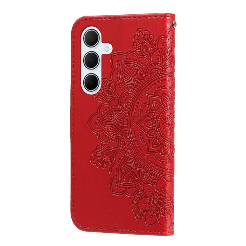 Για Samsung Galaxy M35 Επτά-πέταλα λουλούδια ανάγλυφη δερμάτινη θήκη τηλεφώνου (κόκκινο)