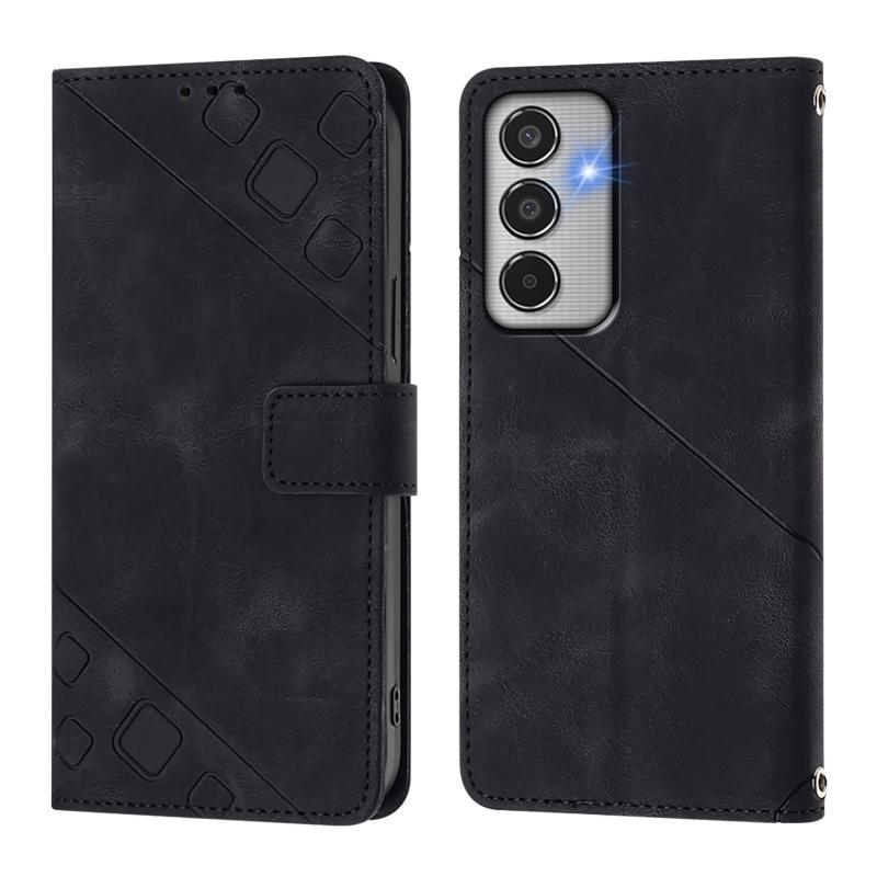 For Samsung Galaxy M35 Skin-feel Embossed Leather Phone Case(Black)