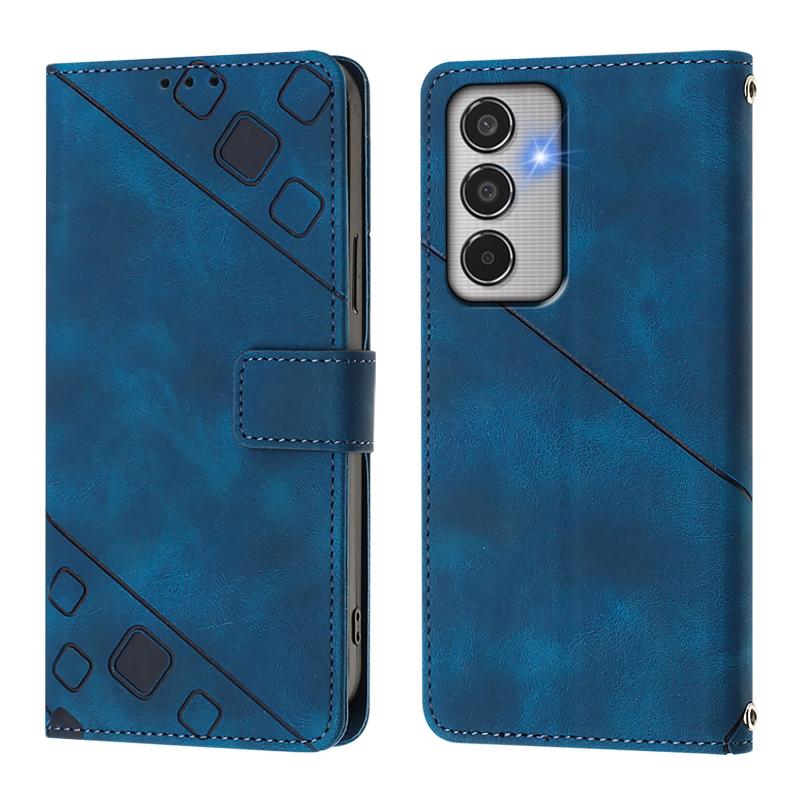 For Samsung Galaxy M35 Skin-feel Embossed Leather Phone Case(Blue)