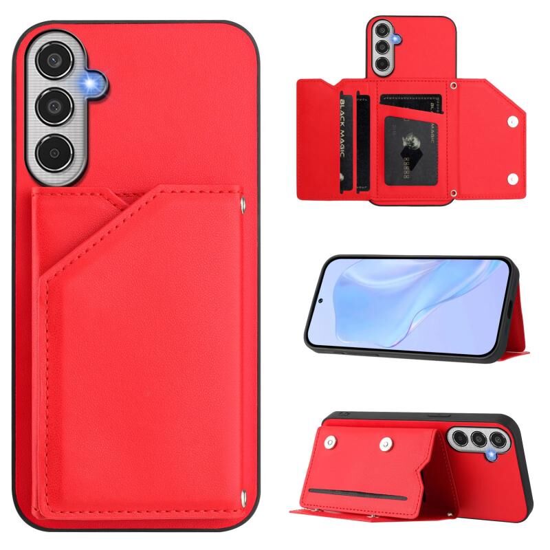 Για Samsung Galaxy M35 δέρμα αίσθηση τέσσερις υποδοχές κάρτα τηλέφωνο υπόθεση με λουράκι καρπού (κόκκινο)