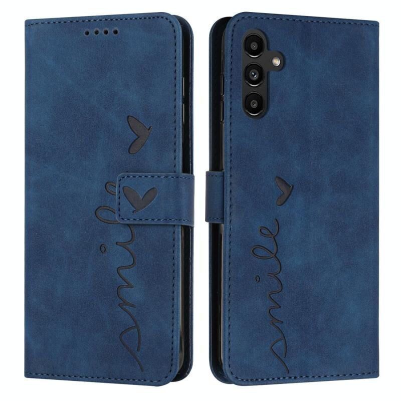 Για Samsung Galaxy M35 δέρμα αίσθηση καρδιά ανάγλυφο δέρμα υπόθεση τηλεφώνου με μακρύ κορδόνι (Μπλε)