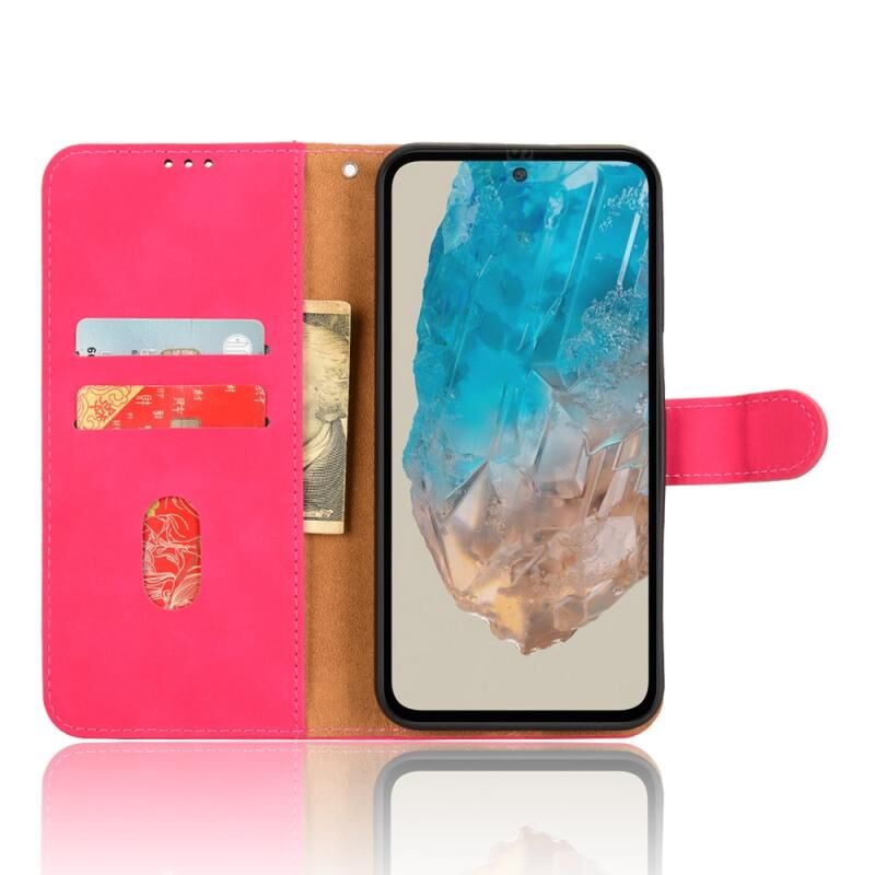 Για το Samsung Galaxy M35 Skin Feel μαγνητική θήκη τηλεφώνου με δερμάτινη επένδυση (ροζ κόκκινο)