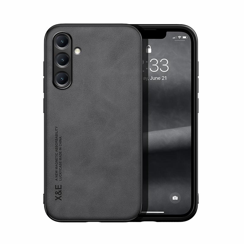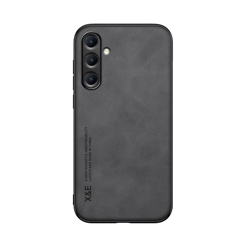 For Samsung Galaxy M35 Skin Feel Magnetic Leather Back Phone Case(Dark Grey)