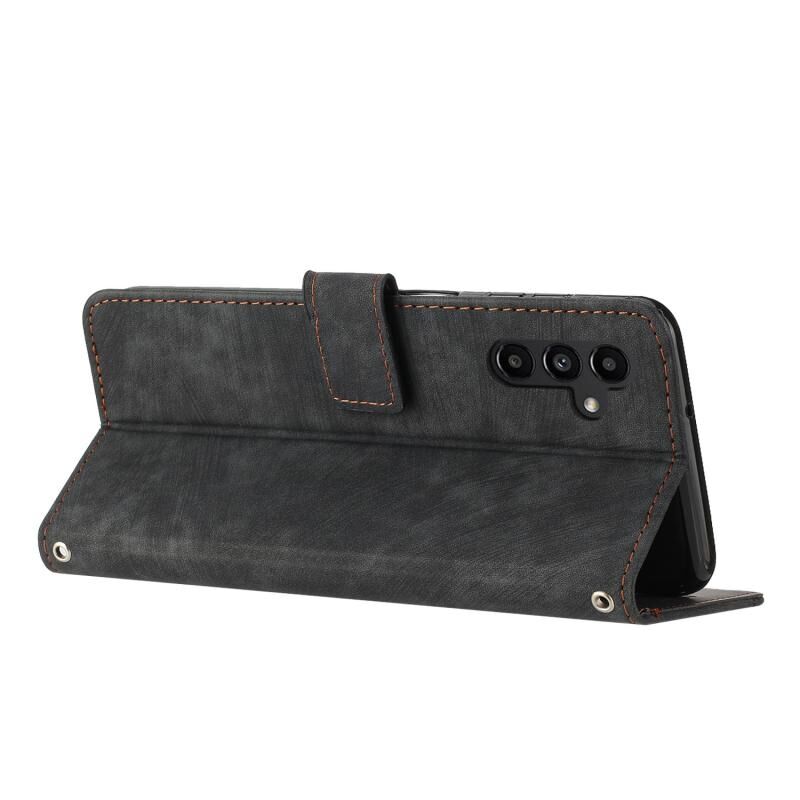 Για το Samsung Galaxy M35 δέρμα αίσθηση λωρίδα μοτίβο δερμάτινη θήκη τηλεφώνου με μακρύ κορδόνι (Μαύρο)