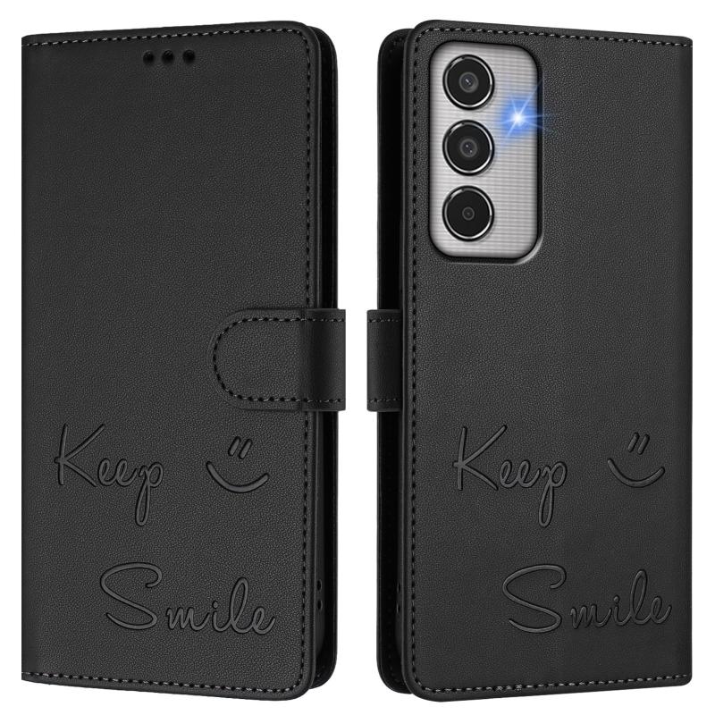 For Samsung Galaxy M35 Smile Embossing RFID Leather Phone Case(Black)