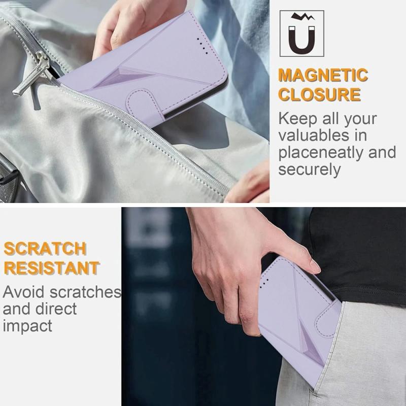 For Samsung Galaxy M35 Triangle Pattern Buckle Clasp Leather Phone Case(Light Purple)