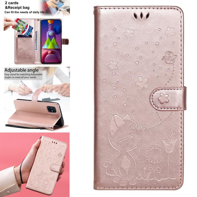Θήκη Samsung Galaxy M51 Cat Bee με ανάγλυφο σχέδιο, αντικραδασμική, οριζόντια, από δέρμα με βάση στήριξης & θήκες για κάρτες & πορτοφόλι (Πράσινο)
