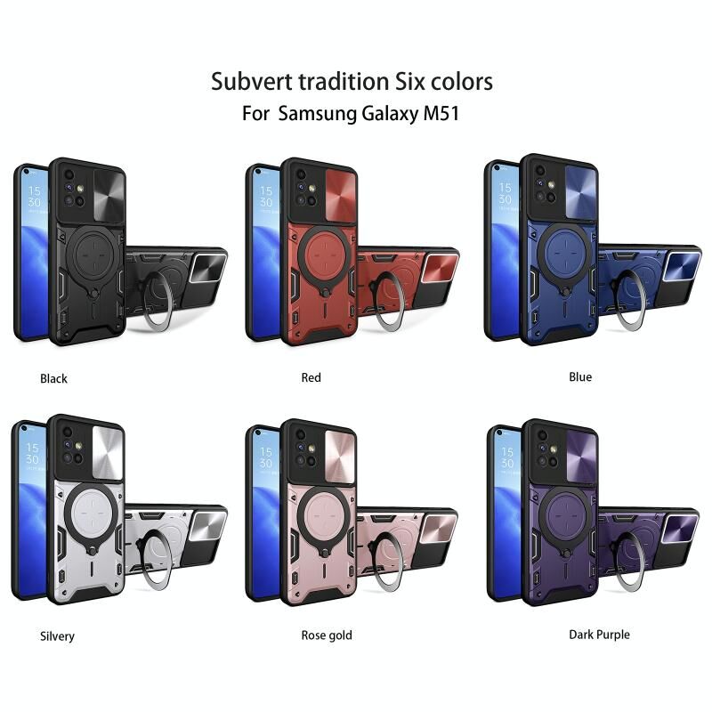 Θήκη κινητού τηλεφώνου για Samsung Galaxy M51 με υφή CD, συρόμενο προστατευτικό κάμερας και μαγνητική βάση (Ροζ)