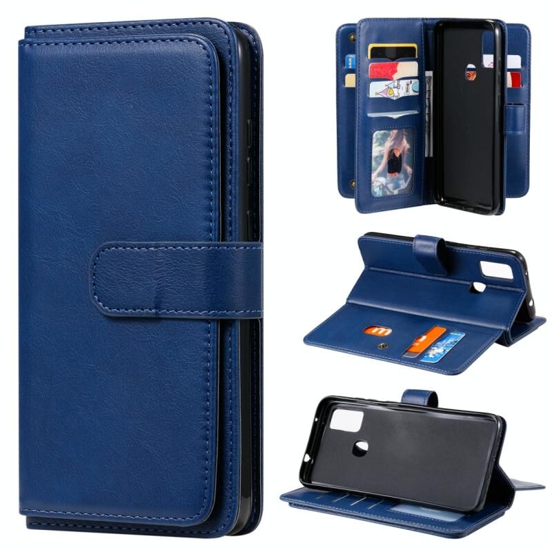 Για Samsung Galaxy M51 Πολυλειτουργική μαγνητική χάλκινη πόρπη οριζόντια Flip αμιγές χρώμα δερμάτινη θήκη με 10 υποδοχές για κάρτες & πορτοφόλι & θήκη & κορνίζα φωτογραφιών (σκούρο μπλε)