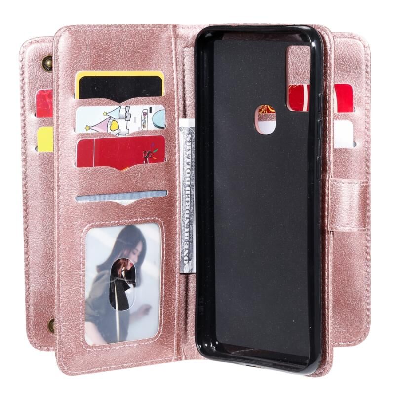 Για Samsung Galaxy M51 Πολυλειτουργική μαγνητική χάλκινη πόρπη οριζόντια Flip αμιγές χρώμα δερμάτινη θήκη με 10 υποδοχές για κάρτες & πορτοφόλι & κάτοχος & κορνίζα φωτογραφιών (ροζ χρυσό)