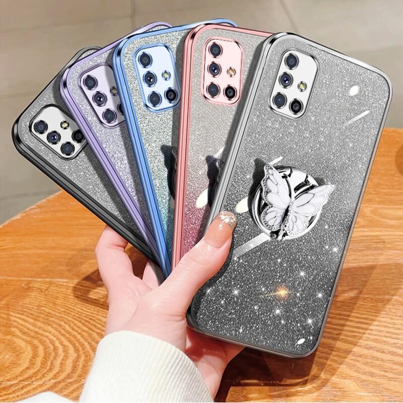 Θήκη κινητού τηλεφώνου Samsung Galaxy M51, TPU με επιμετάλλωση, διαβαθμισμένη λάμψη, πεταλούδα (Ροζ)