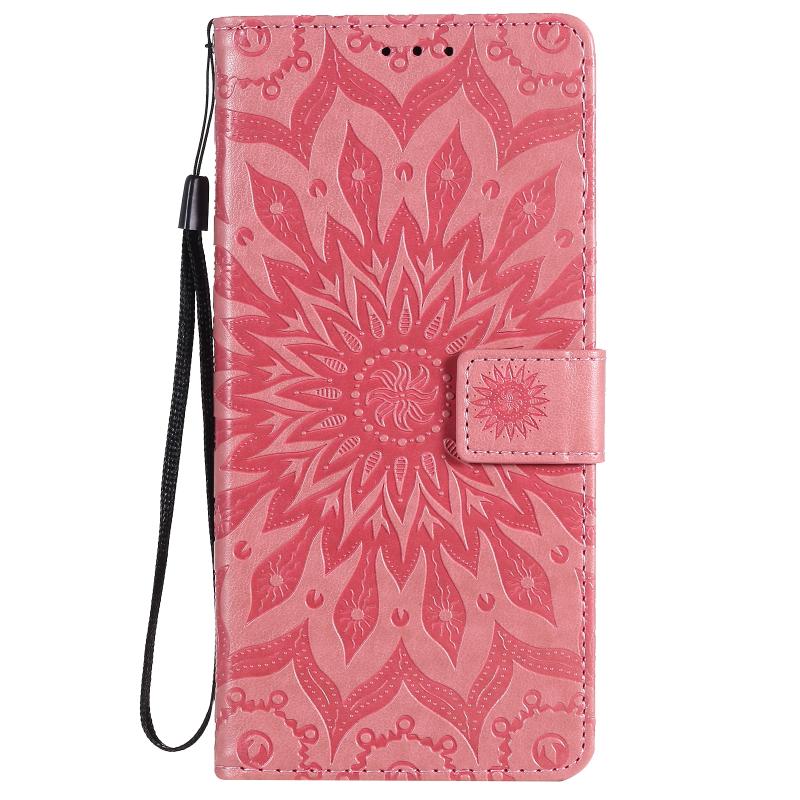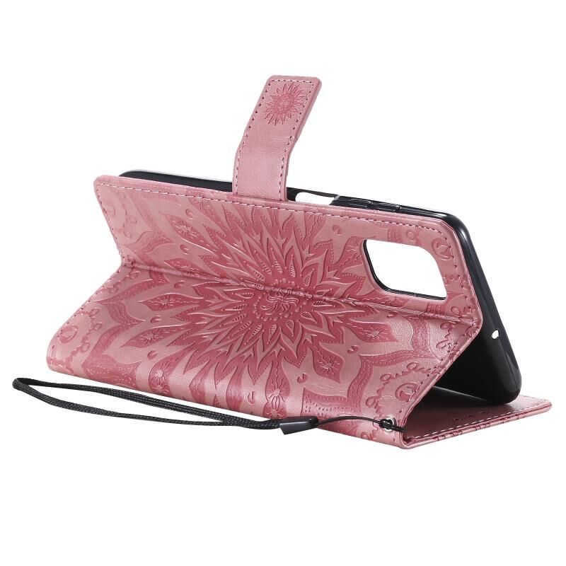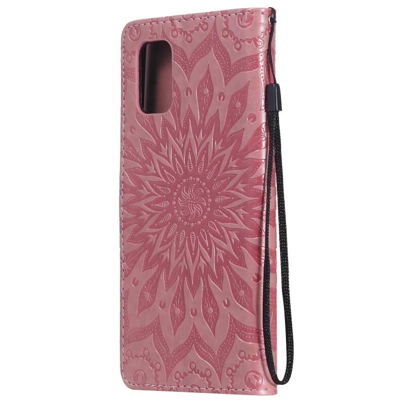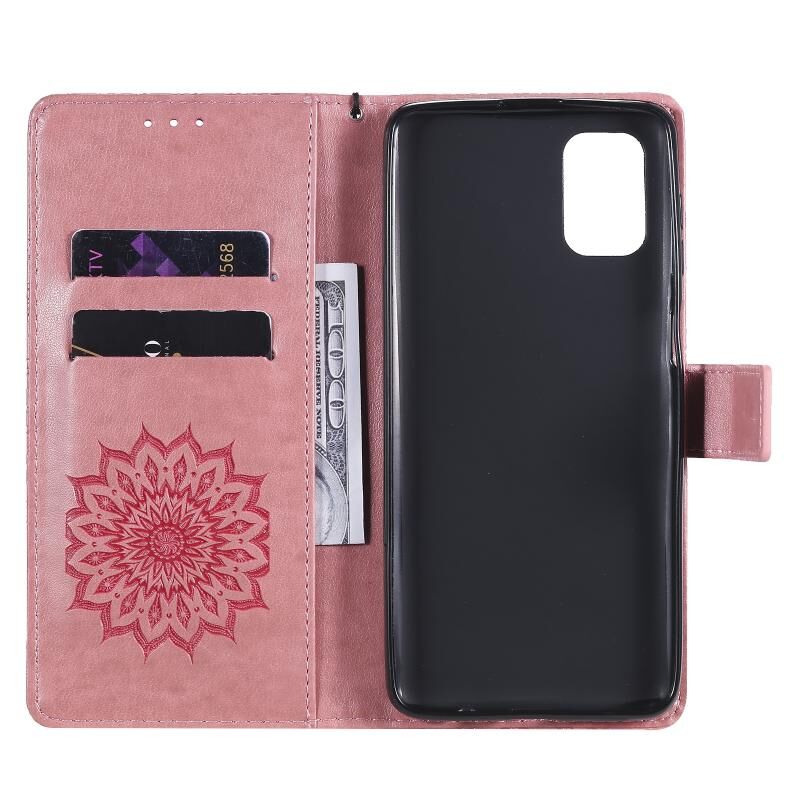 Θήκη για Samsung Galaxy M51 με εκτυπωμένο σχέδιο ηλιοτρόπιου, οριζόντια, από δερματίνη PU με βάση στήριξης, θήκες για κάρτες, πορτοφόλι & λουρί (Χρυσό Ρόδινο).