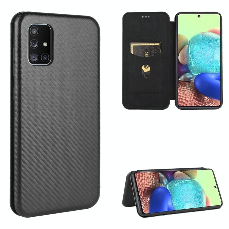 Για Samsung Galaxy M51 (Side Fingerprint) Carbon Fiber Texture Horizontal Flip TPU + PC + PU Leather Case με υποδοχή κάρτας (μαύρο)