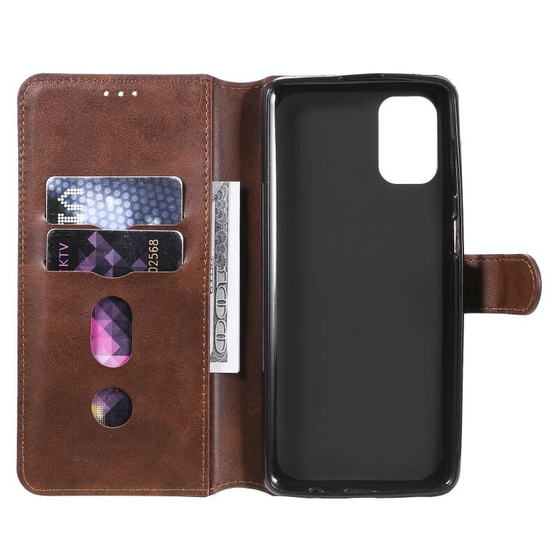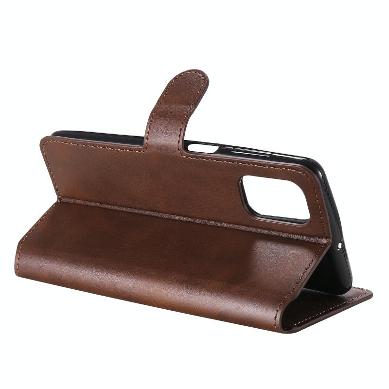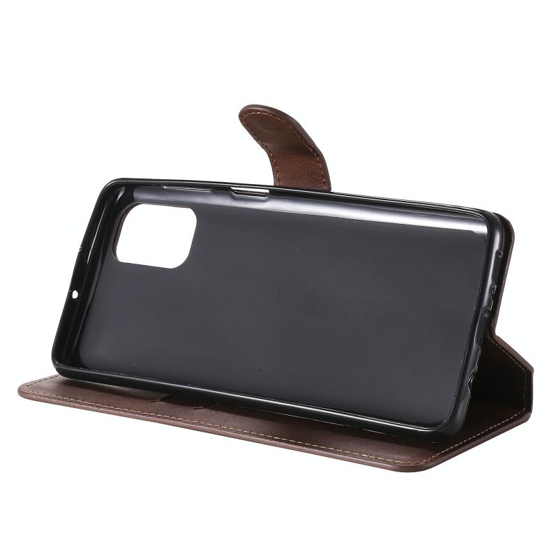 Θήκη δέρματος οριζόντιας αναδίπλωσης για Samsung Galaxy M51 με πλευρικό αισθητήρα δακτυλικών αποτυπωμάτων, κλασική υφή μοσχαριού PU + TPU, με βάση & υποδοχές καρτών & πορτοφόλι (Χρυσό Ρόδι)