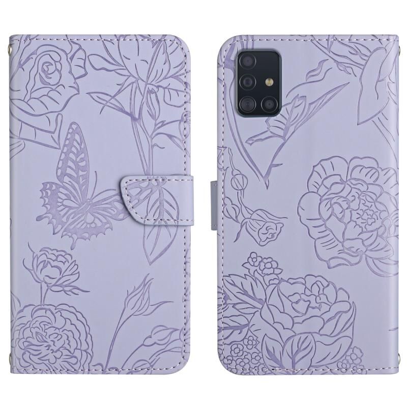Θήκη τηλεφώνου Samsung Galaxy M51 με δερμάτινη υφή, ανάγλυφο σχέδιο πεταλούδας και παιώνιας (Κόκκινο)