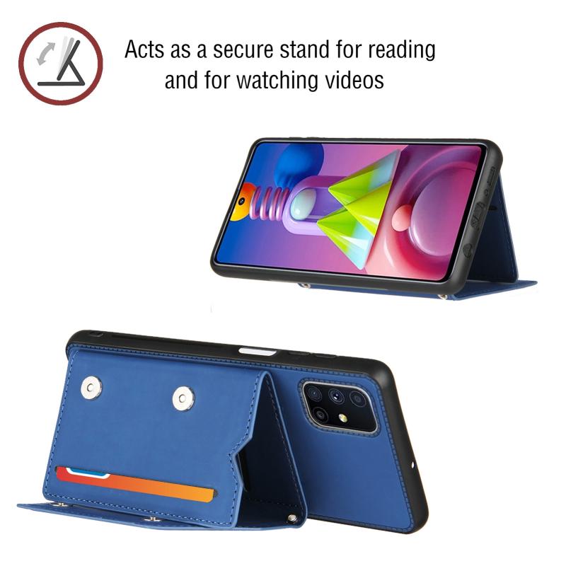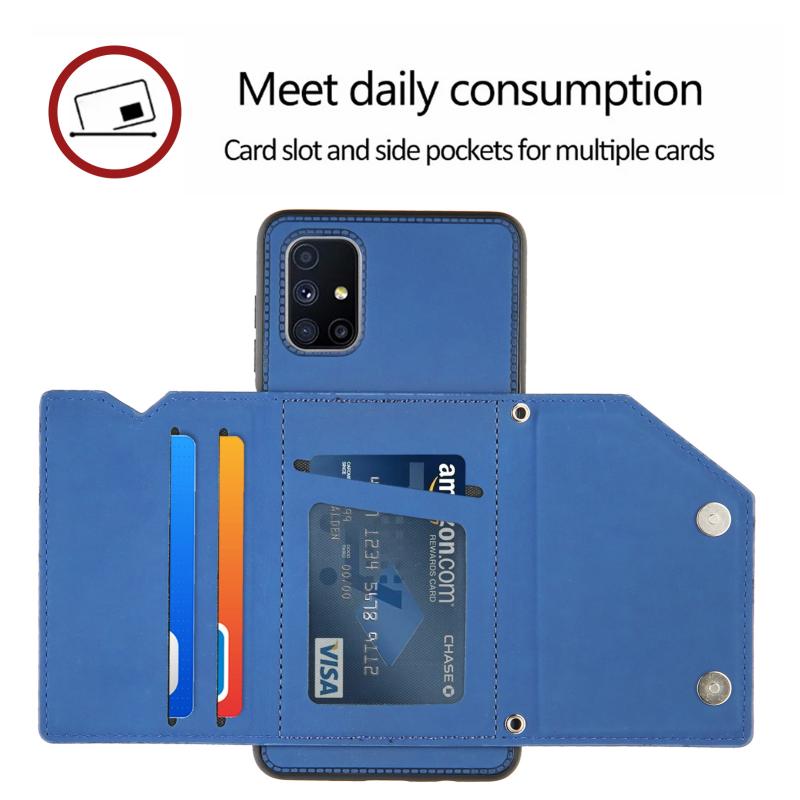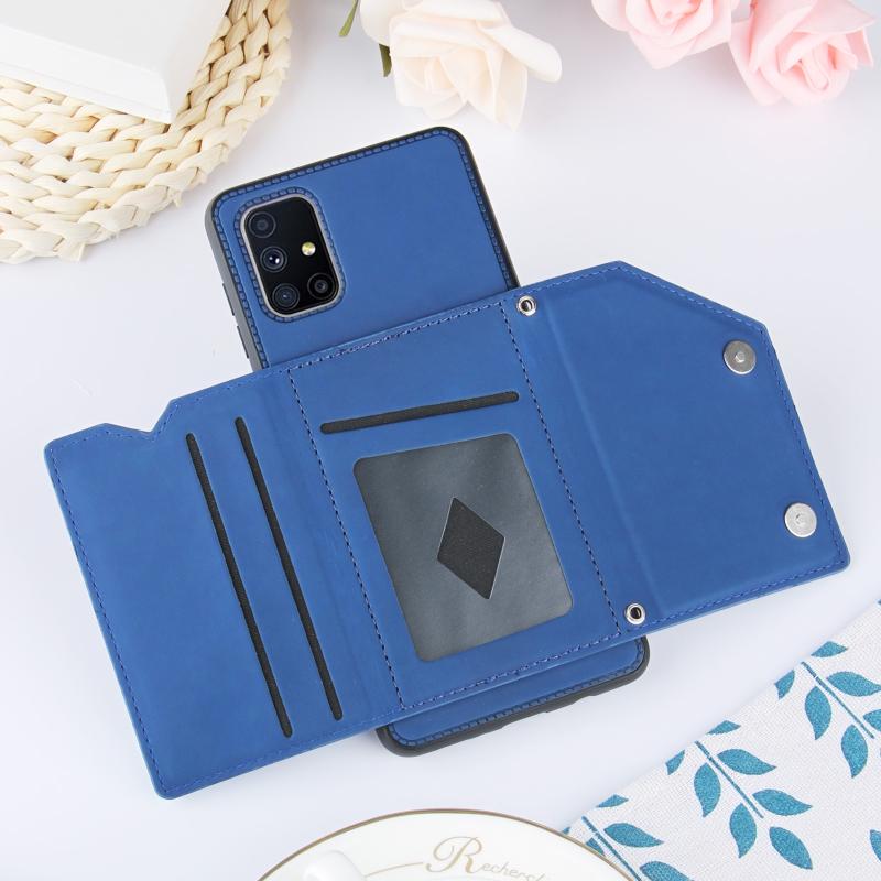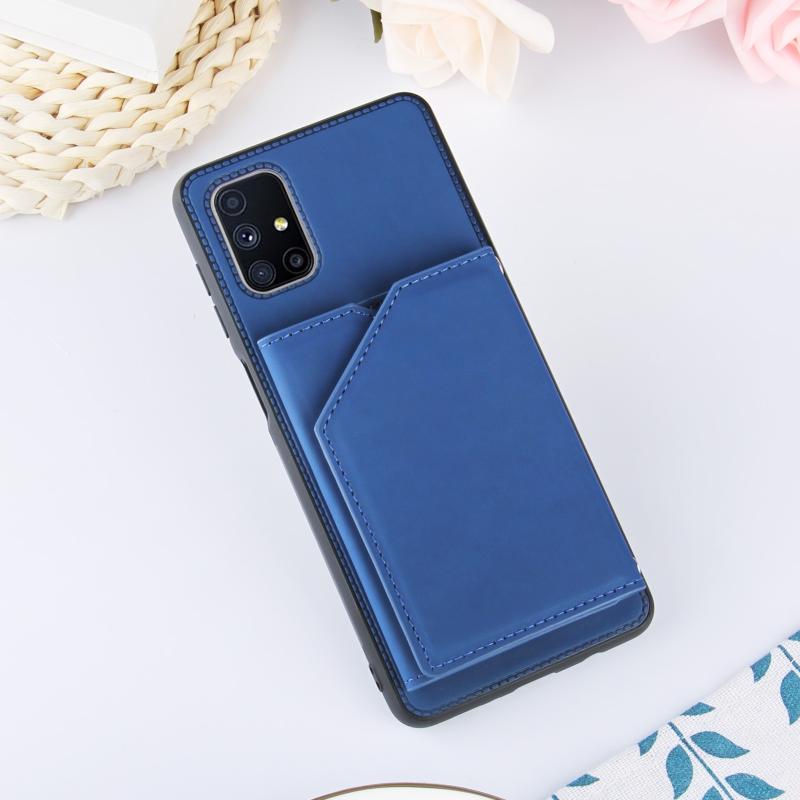 Θήκη για Samsung Galaxy M51 με αίσθηση δέρματος, κατασκευασμένη από PU + TPU + PC, ανθεκτική σε κρούσεις, με θήκες για κάρτες, στήριξη και κορνίζα φωτογραφιών (Βασιλικό μπλε)