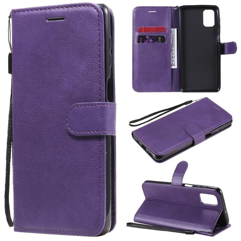 For Samsung Galaxy M51 Solid Color Horizontal Flip Protective Leather Case with Holder & Card Slots & Wallet & Photo Frame & Lanyard(Purple)