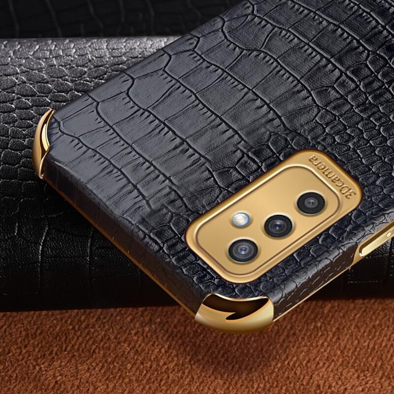 Θήκη τηλεφώνου για Samsung Galaxy M52 5G με ηλεκτρολυτική επίστρωση και υφή κροκόδειλου (Μαύρο)