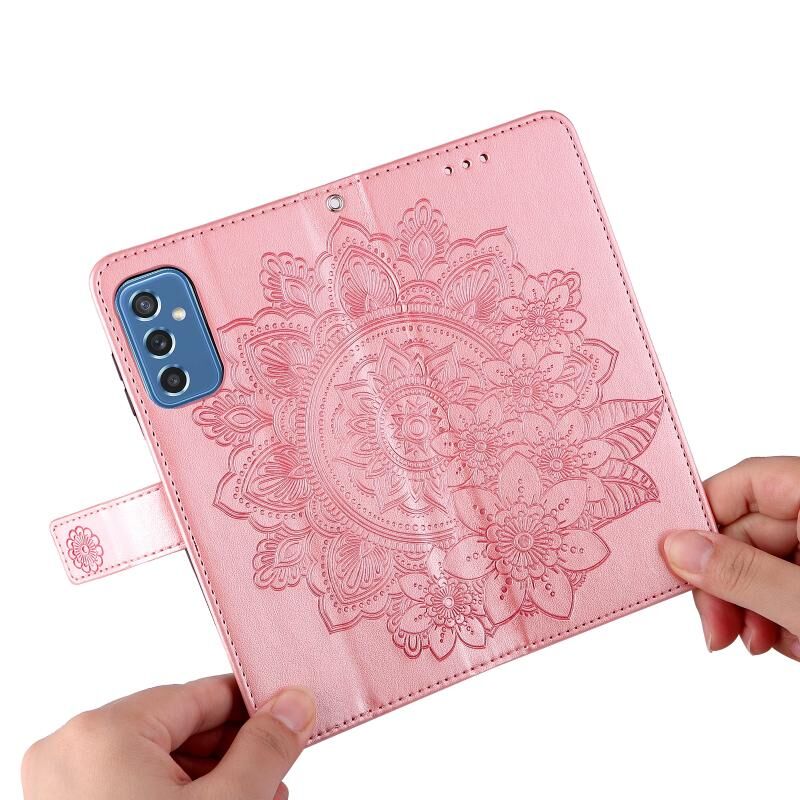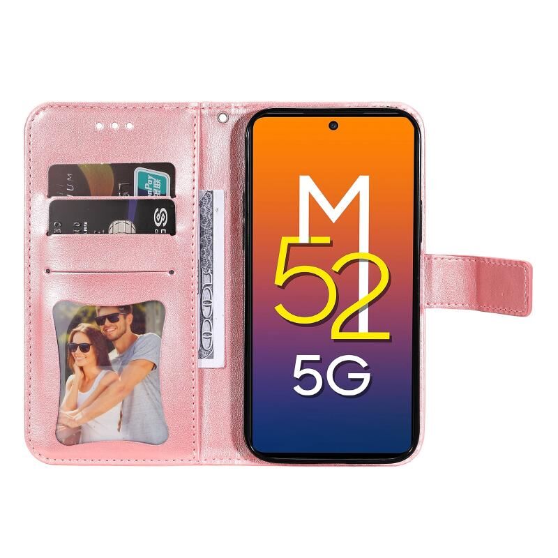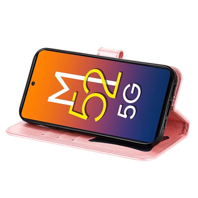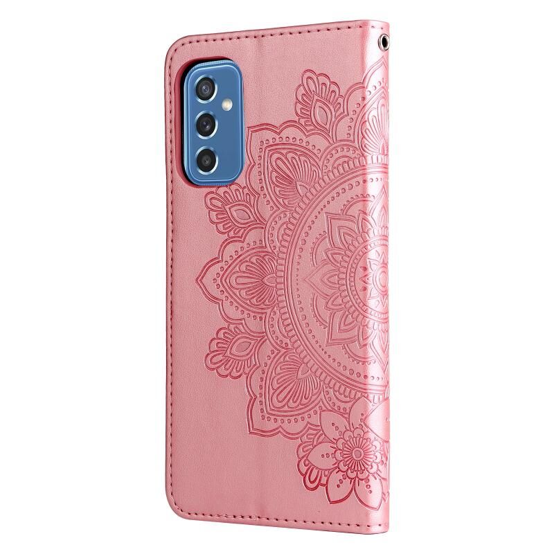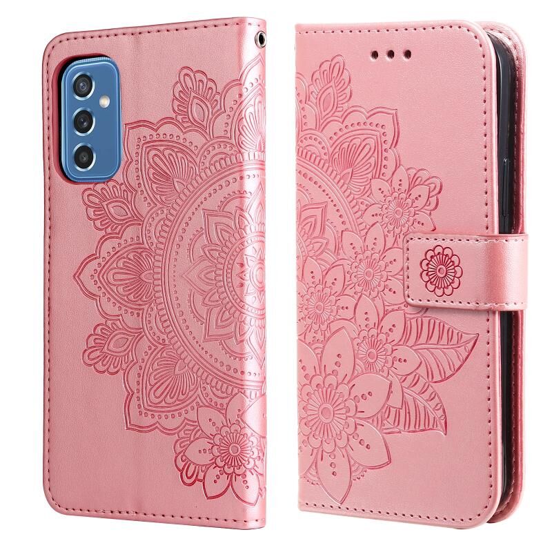 Για Samsung Galaxy M52 5G 7-πέταλο λουλούδια ανάγλυφο Flip δερμάτινη θήκη τηλεφώνου με θήκη & υποδοχές για κάρτες (Rose Gold)