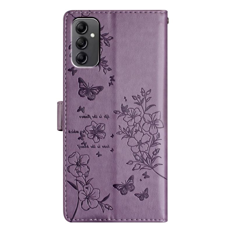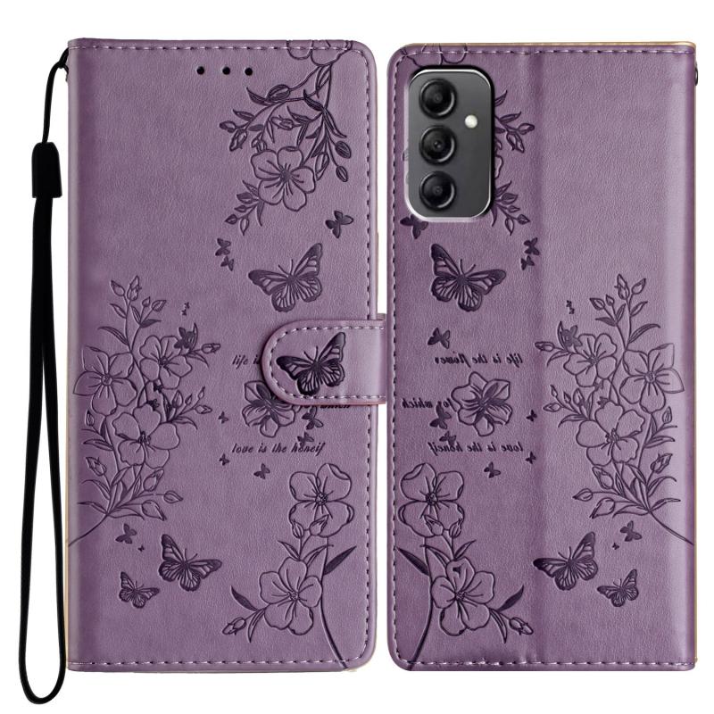 For Samsung Galaxy M52 5G Butterflies and Flowers Leather Phone Case(Purple)
