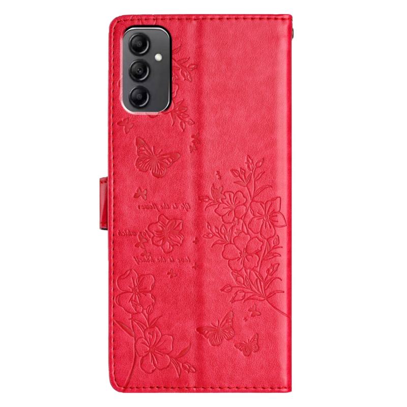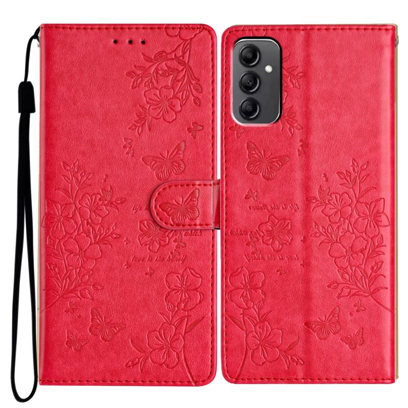 For Samsung Galaxy M52 5G Butterflies and Flowers Leather Phone Case(Red)