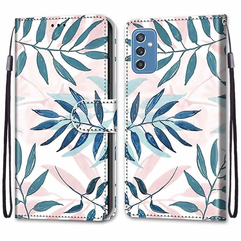 Θήκη τηλεφώνου Samsung Galaxy M52 5G από δέρμα PU με οριζόντιο άνοιγμα, πολύχρωμη σχεδίαση με σταυρωτή υφή, με βάση, θήκες καρτών, πορτοφόλι και κορδόνι (Πολύχρωμο στρώμα (Ροζ Πράσινες Βελόνες))
